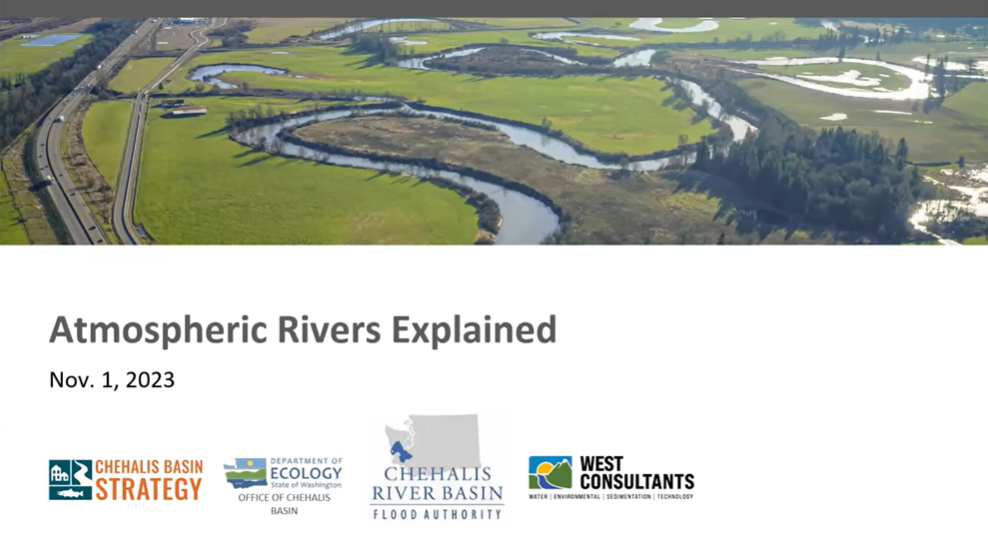 Atmospheric rivers are the leading cause of flood damages in the Chehalis Basin, responsible for 98 percent of the losses during flooding events. Yet it hasn’t been until recently that scientists have understood this weather phenomenon. While heavy rains and flooding are a natural part of life in the Chehalis Basin, climate change is magnifying their severity. It’s crucial that residents understand the resources and actions that can protect themselves, their family, and their property as flood season begins. Join the Office of Chehalis Basin and the Chehalis River Basin Flood Authority for a one-hour webinar as we take a deep dive into atmospheric rivers and how Chehalis Basin residents can prepare for them with the Chehalis River Basin Flood Warning System.