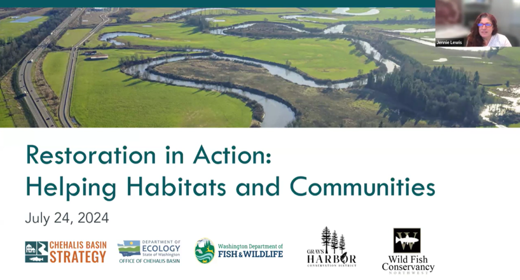 Take a dive into local rivers and streams during Restoration in Action: Helping Habitats and Communities. Learn about some of the habitat restoration projects underway through the Chehalis Basin Strategy’s Aquatic Species Restoration Plan and the benefits they provide to local communities, ecosystems, and the region as a whole. This one-hour community webinar is hosted by the Washington State Department of Ecology’s Office of Chehalis Basin, the Washington Department of Fish and Wildlife, local conservation districts and Wild Fish Conservancy. It covers: (1) Community and regional benefits, (2) Habitat restoration projects under construction this summer, and (3) Innovative restoration techniques