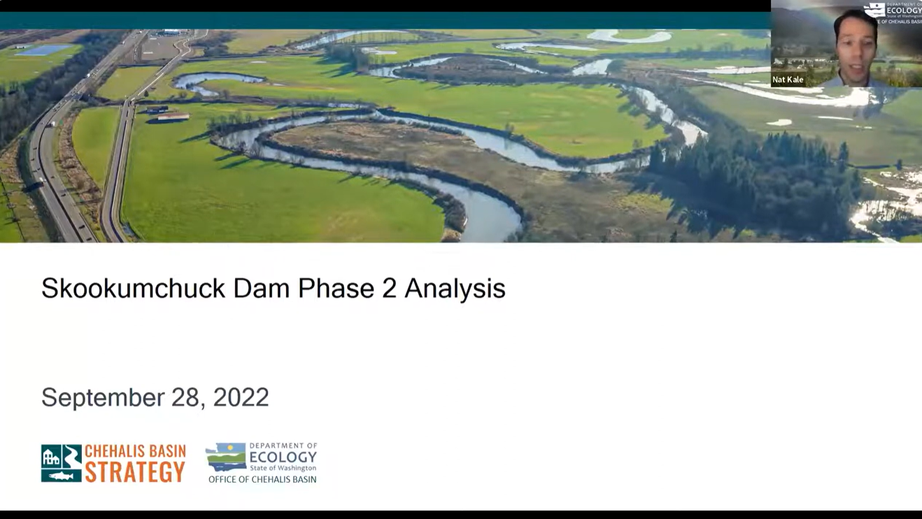 The Office of Chehalis Basin is currently studying ways that the Skookumchuck Dam—which sits at the midpoint of the Skookumchuck River—could be improved for flood damage reduction and/or fish passage. This presentation covers findings from Phase 1 of the study. Results from the complete study will be shared in early 2023.